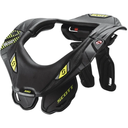Nakkeskader kan være de mest alvorlige skadene på overkroppen i motorsykkel ulykker. Scott Nakke Brace er utviklet i samarbeid med Leatt®, markedslederen og pioneren bak ”hjelmen for nakken”. Nakkekragen er en helt essensiell del av ditt personlige sikkerhetsutstyr. Designet for å fungere sammen med hjelmen. Nakkekragen skal forhindre overbelastning av nakken ved ulykker. Scott Nakke Brace er utviklet med Leatt® sin velprøvde Alternative Load Path Technology TM™(ALTP™) og gir perfekt integrasjon av funksjon, bevegelsesfrihet, og utseende for motorsykkel/ MX/ Enduro kjøring, på veien eller på bane. Alle Scott nakkekrager beskytter føreren mot 5 forskjellige hode/ nakke overbelasninger med Alternative Load Path Technology. Denne teknologien fordeler trykket som oppstår ifra slag/støt mot hodet, og avlaster støtene fra sårbare nakkevirvler til sterkere eller ikke så kritiske områder i overkroppen. I alle 5 situasjoner vist under vil trykket fordeles ned i nakkekragen og ut i mindre sårbare områder. Hvis trykket på visse punkter blir for stort, vil kragen knekke sammen. Dermed absorberes mesteparten av støtet i kragen.